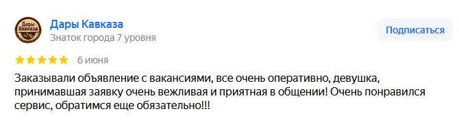 Приятно, что наши вакансии соискатели параллельно видят на сайте газеты, и это не требует дополнительных затрат. Спасибо за профессиональное сотрудничество!