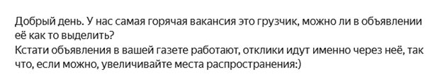 Хочу выразить благодарность за оперативную и четкую работу редакции "Рабочие места".